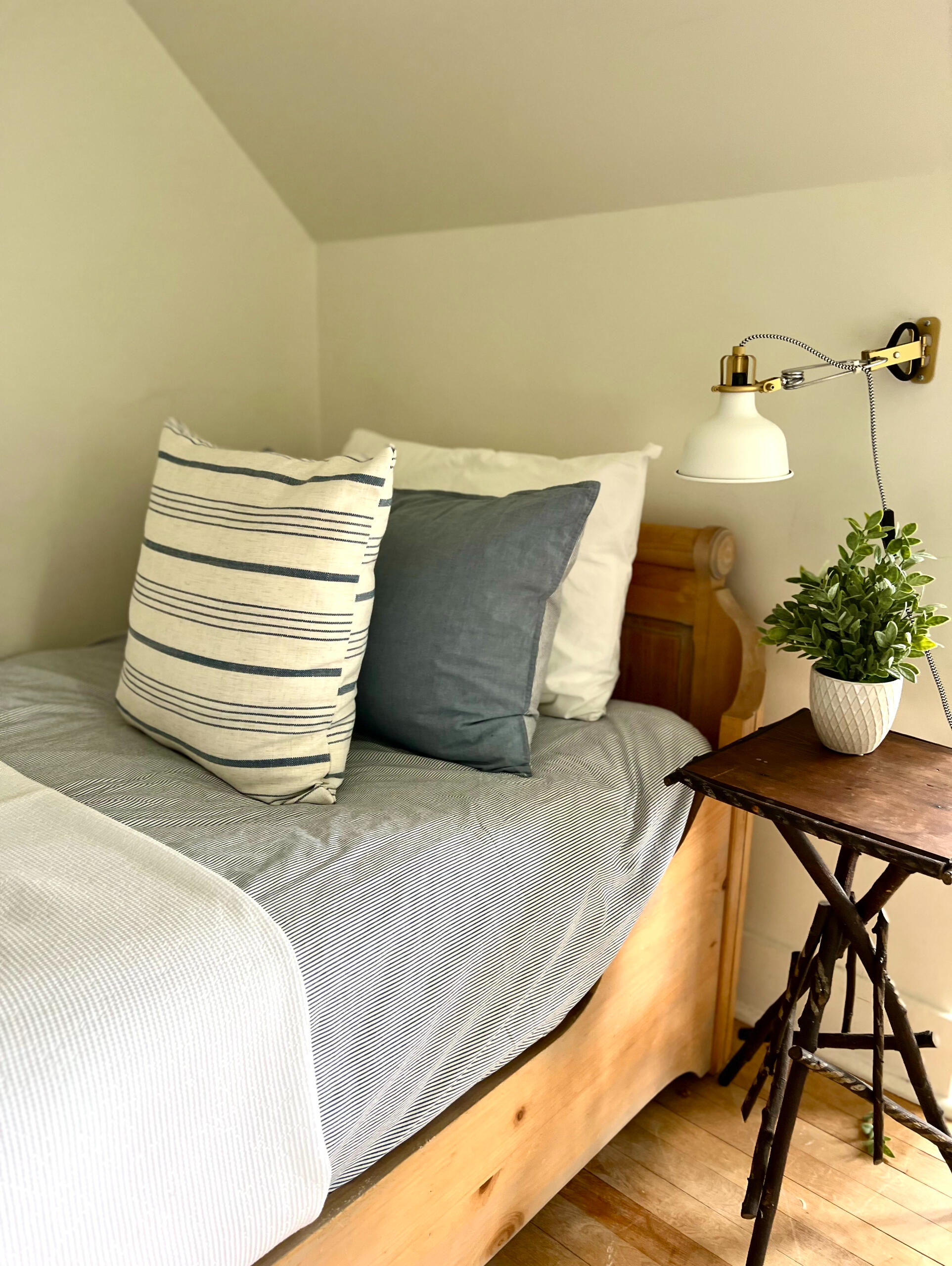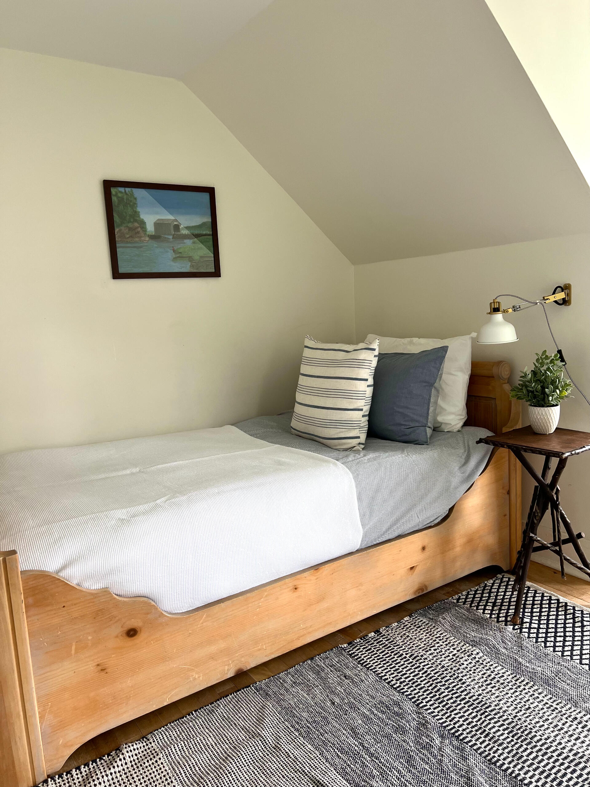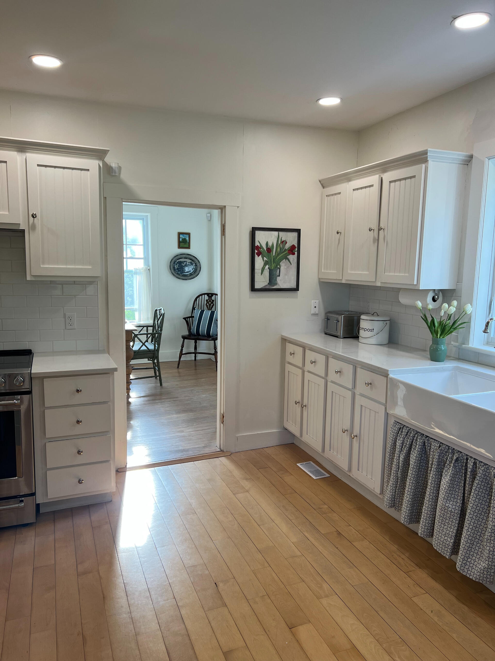 Welcome to Tamarack, a charming century home in the heart of Chester Village. The house is a short walk to the Chester Yacht Club, restaurants, art galleries, shops and the water. Downstairs is an open living/dining/entry flooded with natural light facing a quiet courtyard garden. You will also find a full kitchen with all new appliances and a laundry area. A newly remodeled full bath with clawfoot tub and separate walk-in shower rounds out the first floor. The second floor offers 3 bedrooms, 2 with queen beds and one with a single twin. Another remodeled full bath with separate shower and clawfoot tub completes the upstairs.The cottage has central heat and air conditioning and there is a small wood burning stove. The fully equipped kitchen has everything you need to enjoy your stay. Outside you will find a BBQ, Adirondack chairs and a lovely cottage courtyard garden with some peekaboo views to the water.There is off-street parking for one car and ample street parking for any additional vehicles.Please note that the cottage is 125 years old and the second floor has many sloped ceilings. There may be areas going up the stairs where a taller person might have to exercise caution.